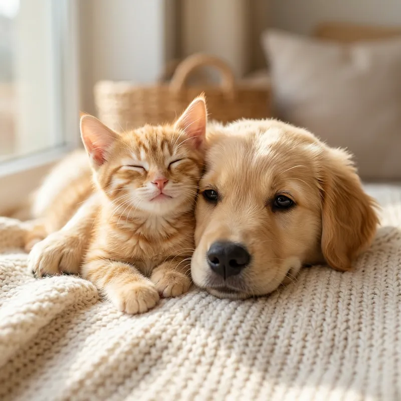 Tender Kitten and Puppy Smiling Together