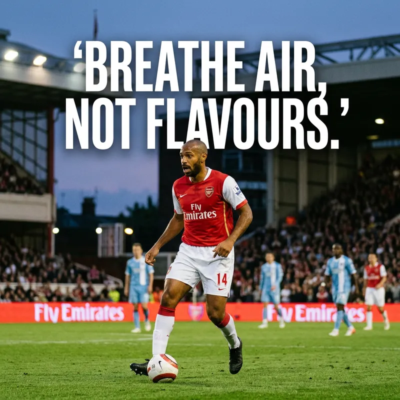 Thierry Henry playing for Arsenal saying 'Breathe Air, Not Flavours.'