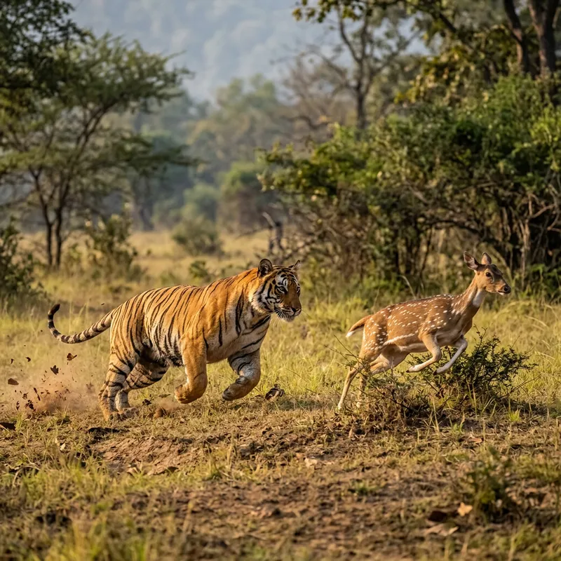 Tiger Chasing Prey: The Wild Hunt