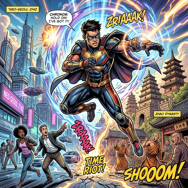 Time Travel Superhero Comic Scene