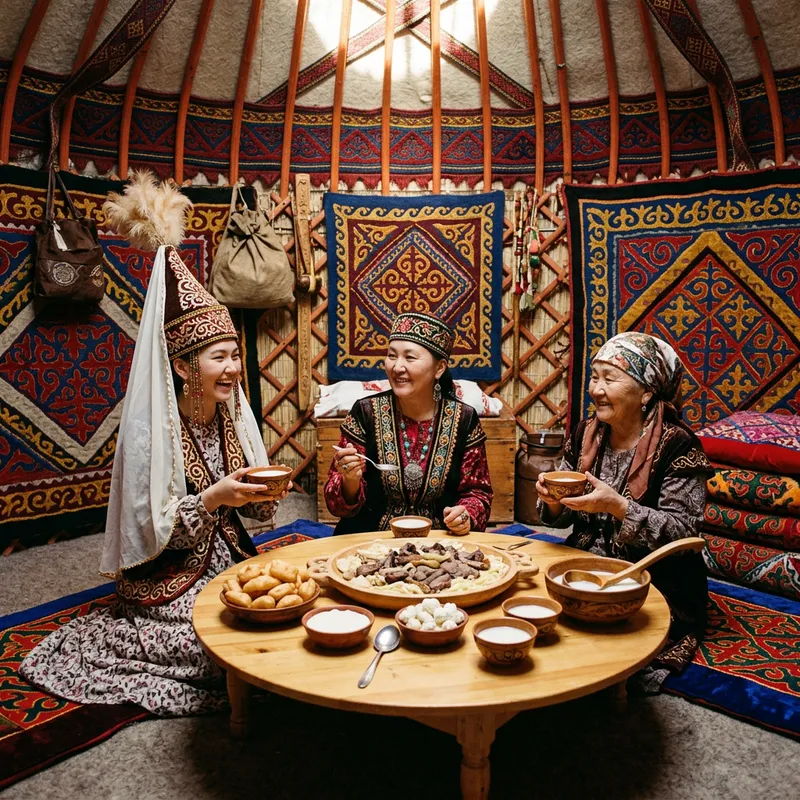 Exploring Kazakh Culinary Traditions in a Nomadic Yurt