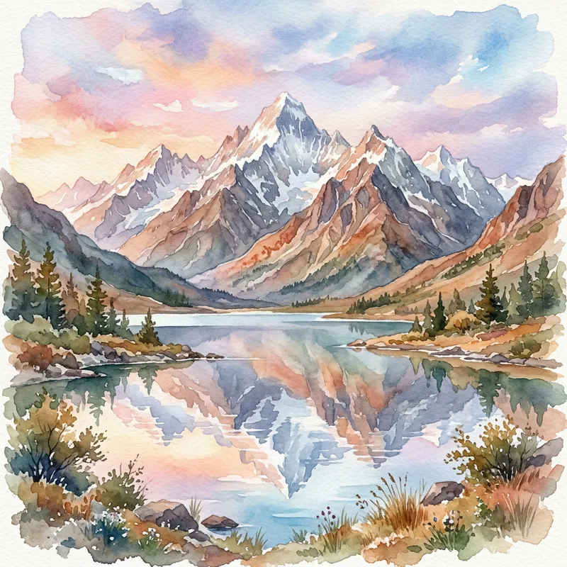 Tranquil Mountain Range in Watercolor Painting