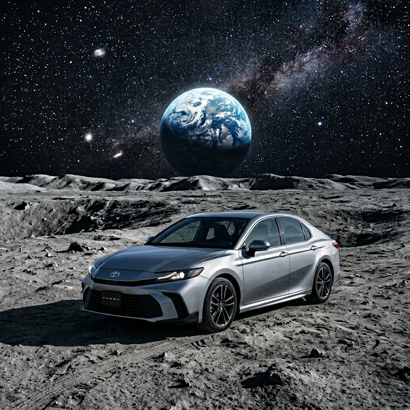 Tranquil Night Drive: Sleek Toyota Camry on Moon Landscape