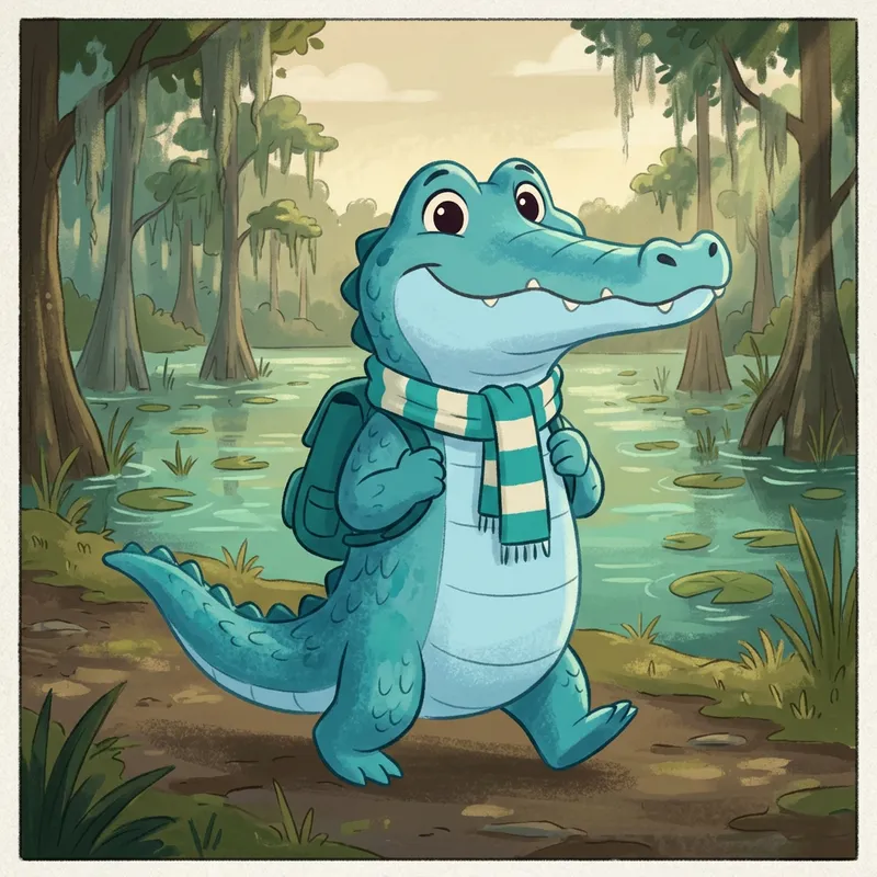 Original Prompt: cocodrilo animado de color turquesa con celeste