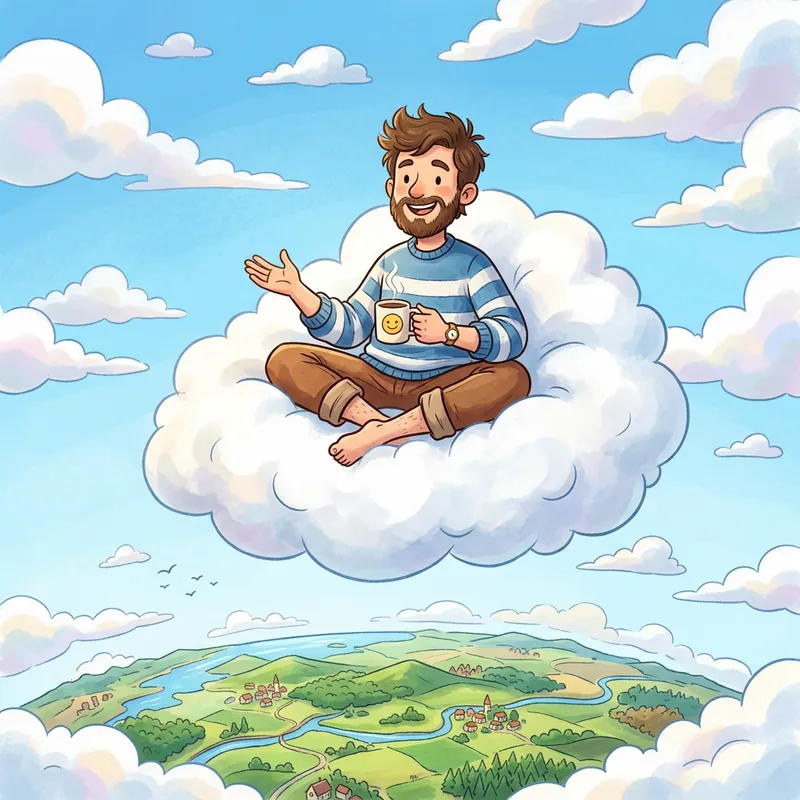 Cartoon Man Sitting on a Cloud