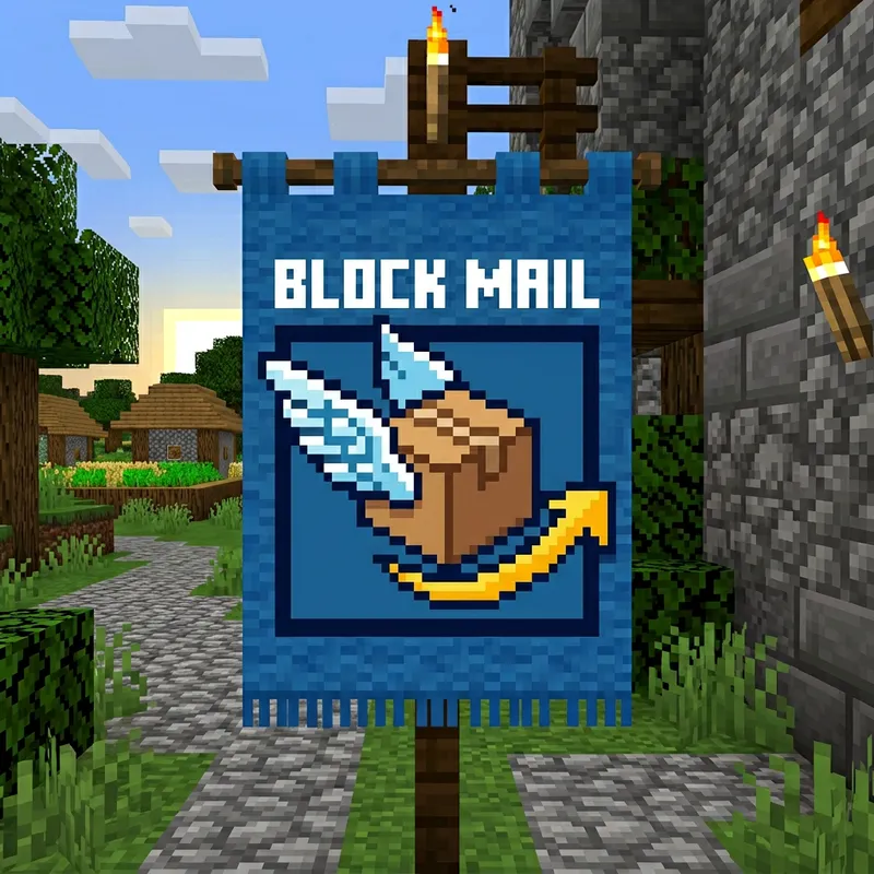 A Minecraft pixel art logo also suitable for a banner resembling a delivery business logo.