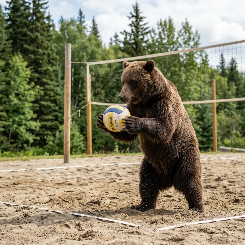 Original Prompt: un orso con una palla da pallavolo