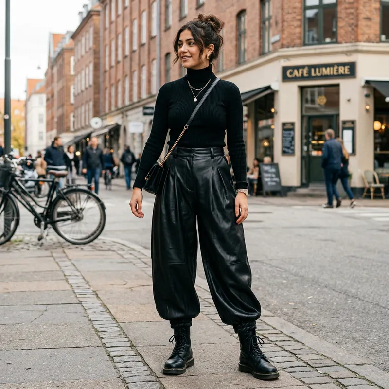Stylish Black Faux Leather Balloon Pants
