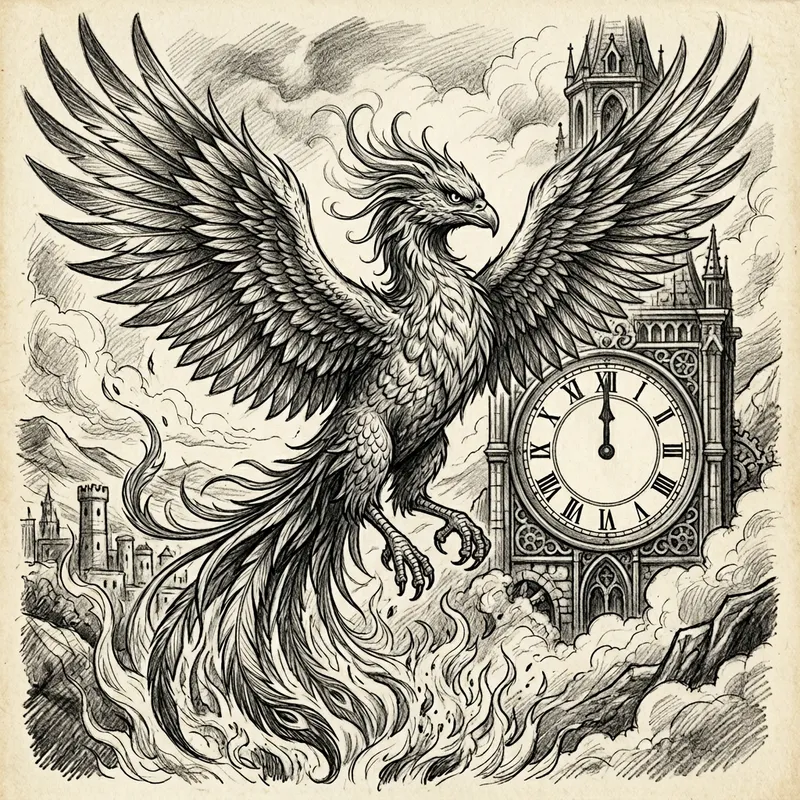 Phoenix Drawing with a Clock at 12 O'Clock