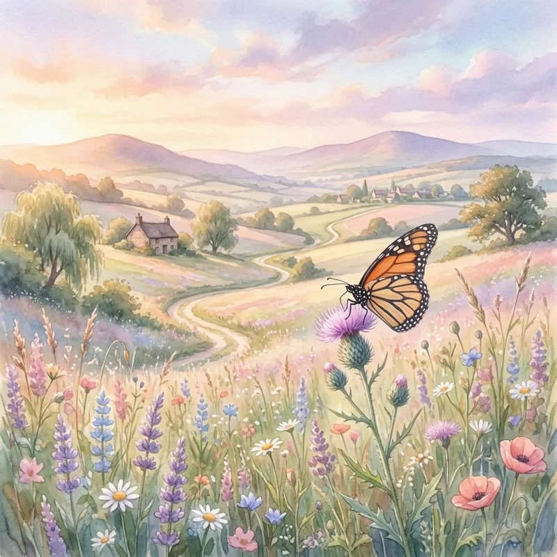 Pastel Landscape with a Stunning Butterfly