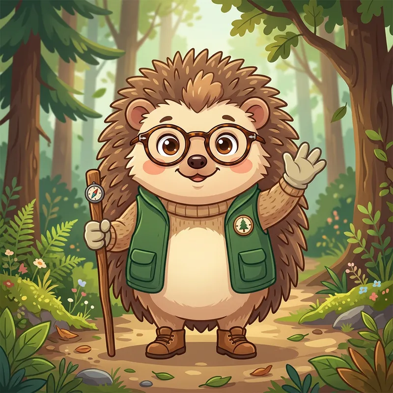Cute Cartoon Hedgehog Mascot with Stylish Glasses