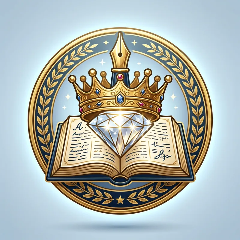 Visualize an icon that symbolizes high-value content. This icon should ideally combine symbols that are universally associated with quality, worth and knowledge. Use pictorial representation such as golden crown representing high quality, diamond for worth, and book or pen for knowledge. This amalgamation should create a unique icon that reflects the concept of valuable content.