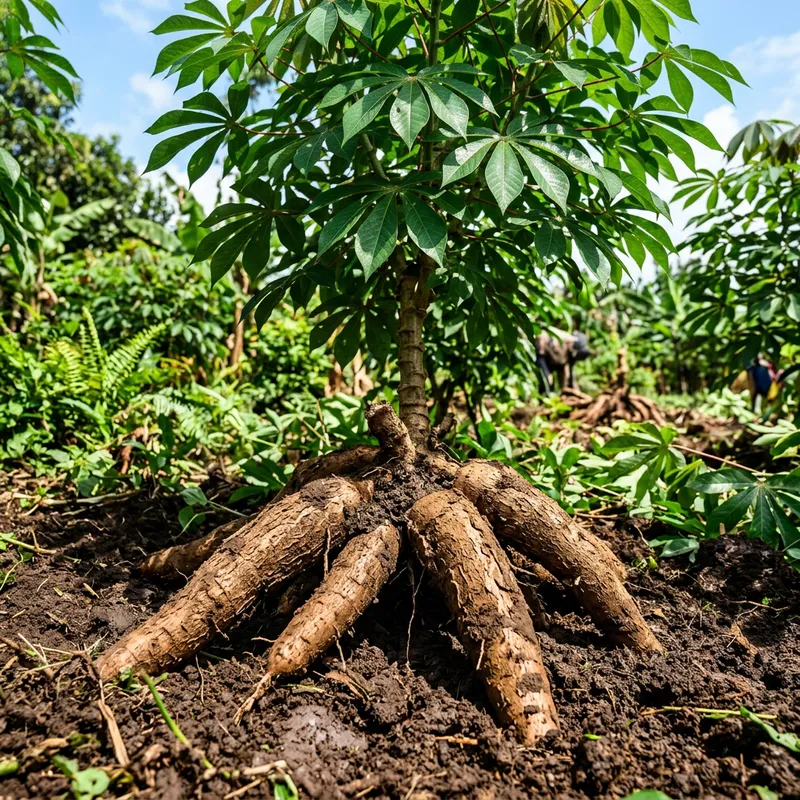 Vibrant Cassava Roots Thriving in Nutrient-Rich Soil