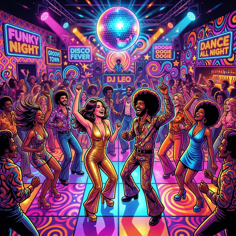 Vibrant Disco Scene: Retro 70s Dance Party