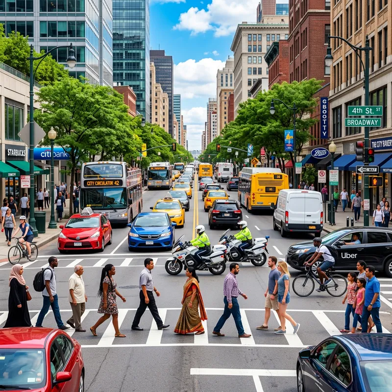 A Bustling and Diverse City Traffic Scene
