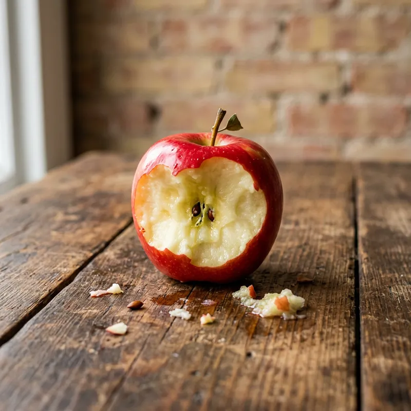 Vibrant Image of Eaten Apple on Rustic Table
