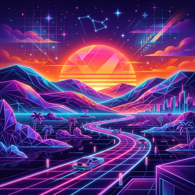 Vibrant Synthwave Landscape: A Retro-Futuristic Dream