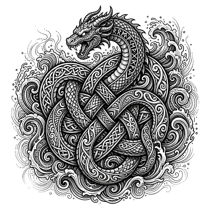 Exquisite Viking Tattoo of Jörmungandr in Maori-Inspired Art