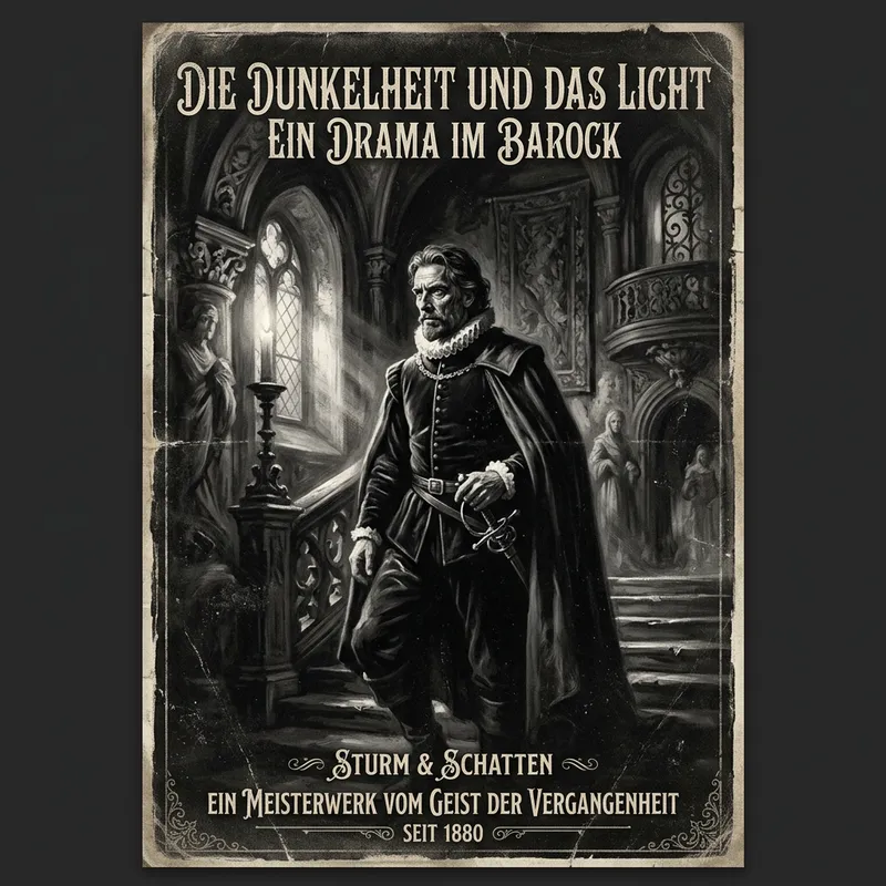 Vintage Black-and-White Poster Art in Baroque Style