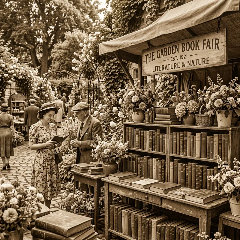Step into the Enchanting Vintage Book Fair in Lush Garden