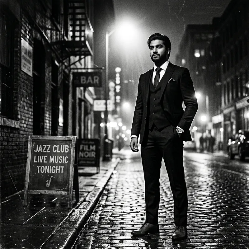 Vintage Film Noir Portrait of a Confident South Asian Young Man