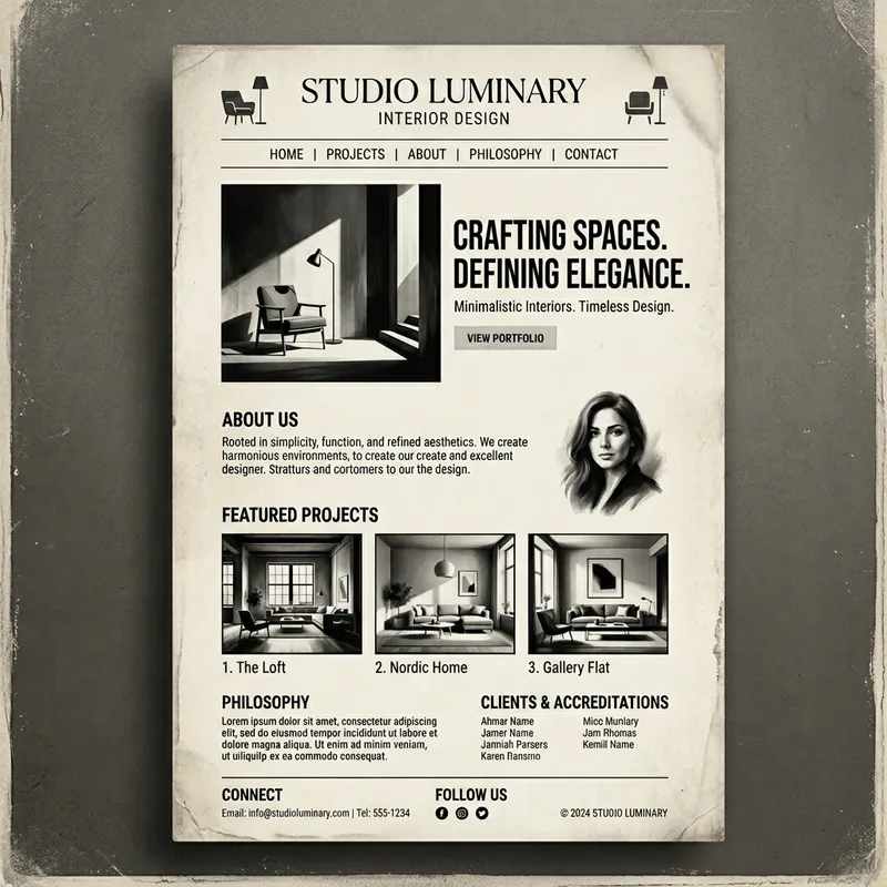 Vintage Minimalistic Interior Designer Website Layout