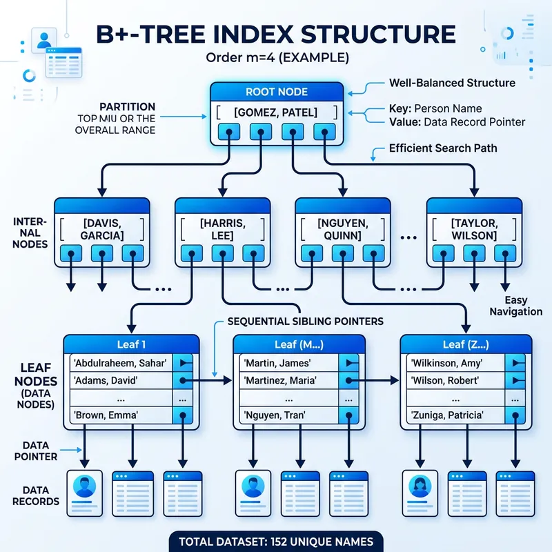 Creating a Well-Structured B+-Tree Index for 152 Names Data Set