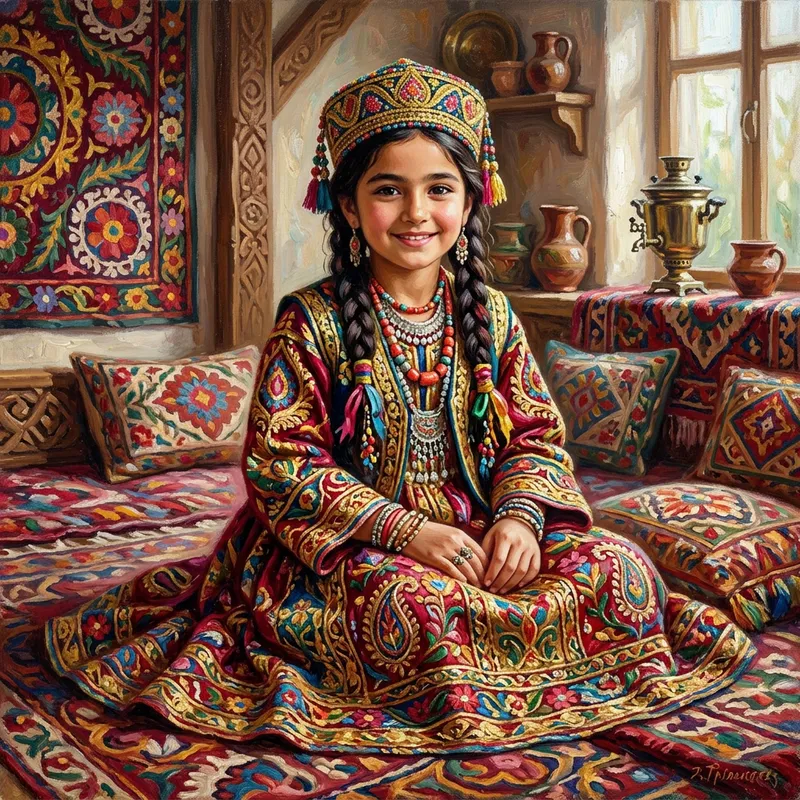 Vivid Tajik Girl in Traditional Dress