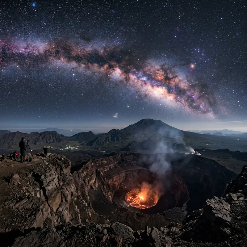 the crater of a volcano and the sky is space