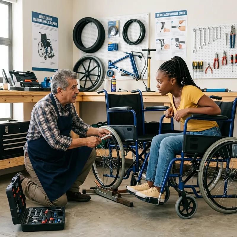 Wheelchair Maintenance Tutorial with Skilled Technician & Curious Learner