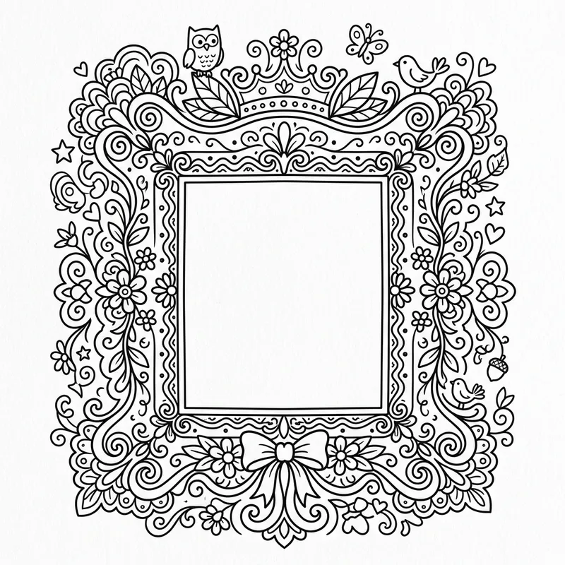 Whimsical Cartoon Picture Frame Coloring Page