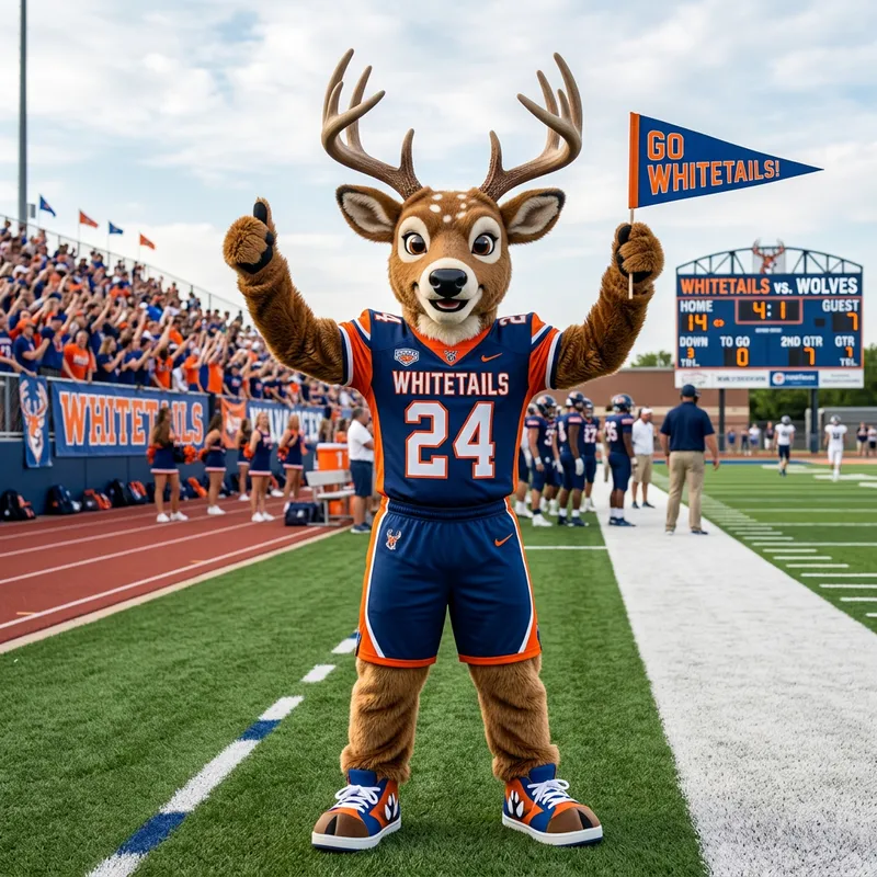 Whitetail deer mascot standing