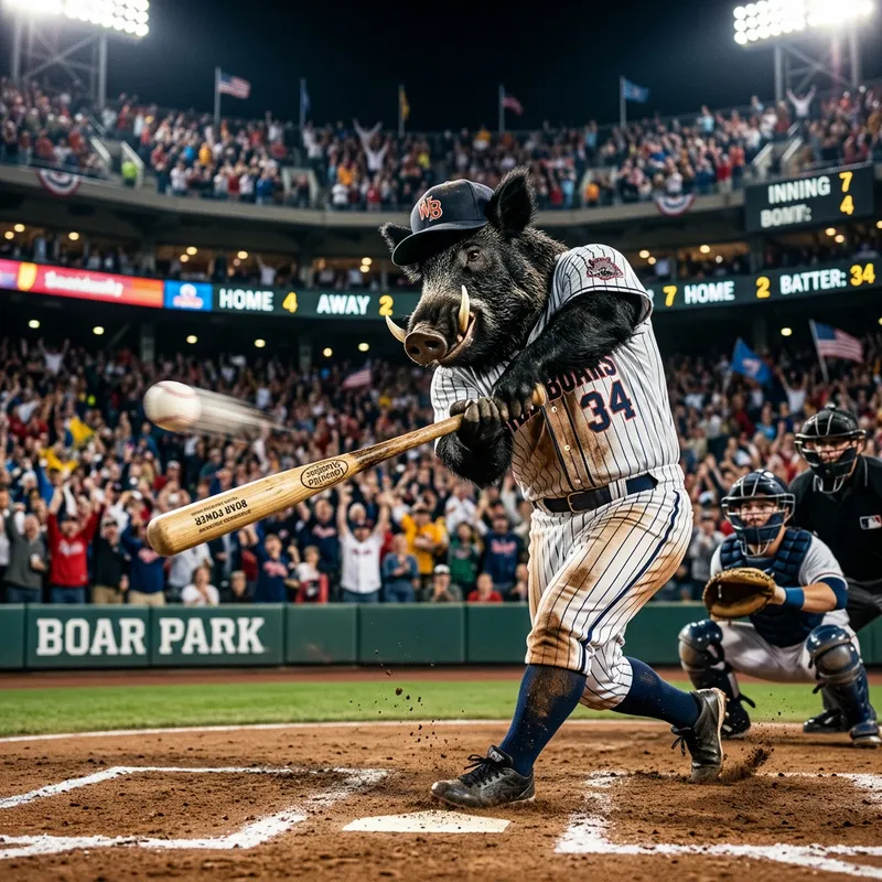 The Wild Boar Playing Baseball Under Stadium Lights
