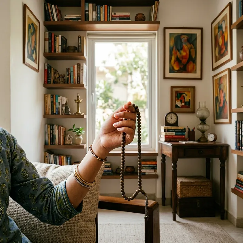 Young South Asian Girl with Tasbeeh in Serene Room