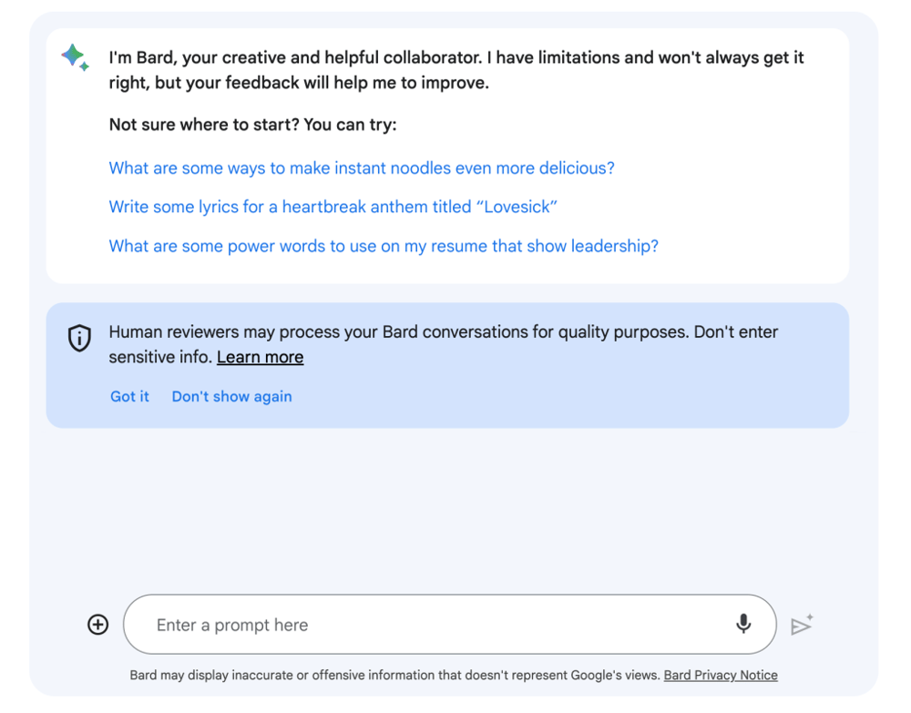 Bard is an interactive conversation tool. Not only does it show search results, but it can also display images directly in the chat window. You can amend your prompts after sending them and choose from up to three output drafts to select the one that best fits your needs.