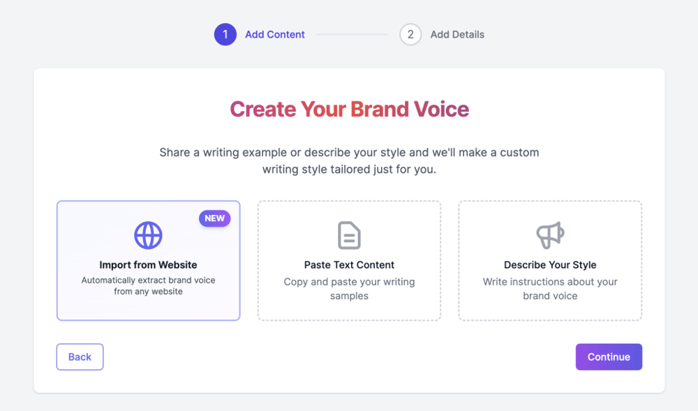 - Describe Your Style — Write instructions about your tone, vocabulary, and voice