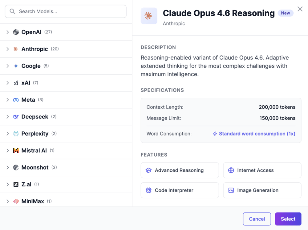 Marky supports all the best AI models in one subscription — GPTs, Claude, GLM, Gemini, DeepSeek, Meta, Perplexity, Kimi, Minimax, Mistral, and more. Your team can switch between models mid-conversation depending on the task.