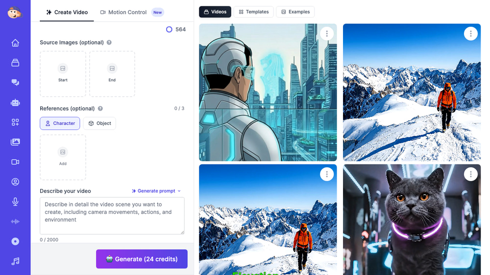 The AI Video Generator lets your team create professional videos from text descriptions or images using cutting-edge AI models — no video editing skills required.