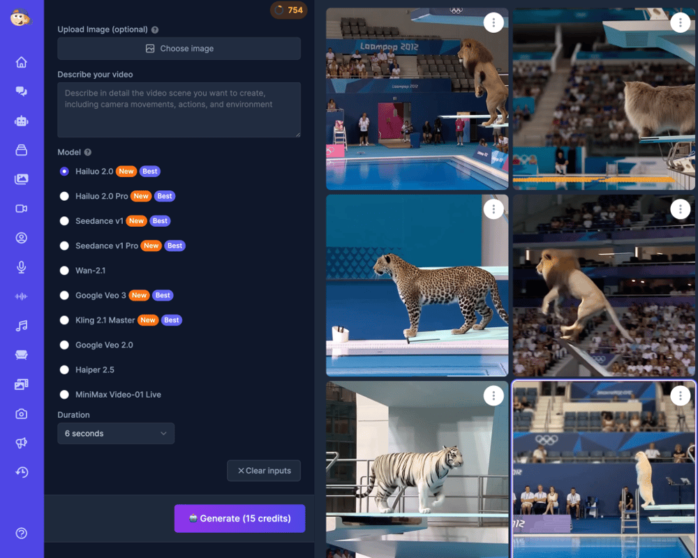 After extensive testing, Hailuo AI 02 emerged as our champion. Its ability to render natural-looking motion, especially for complex actions like diving and jumping, was unmatched.
