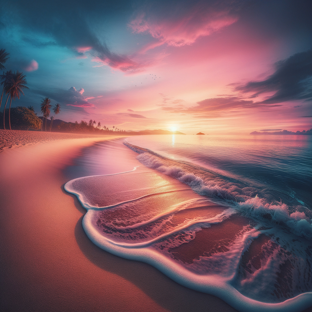 - A dramatic cliffside sunset, with waves crashing against the rocks below.