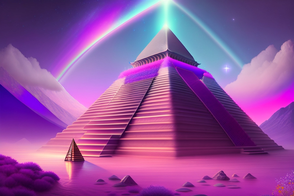 Surreal dream of a pyramid, purple vibe, touch of silver, chill step bliss made with Lexica Art.