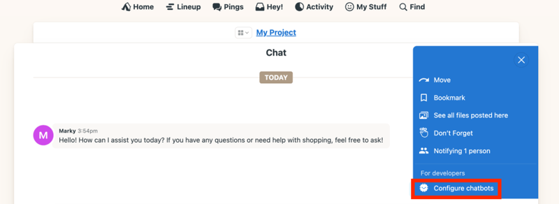 - Open Basecamp and navigate to the chat or campfire where you want to add the bot