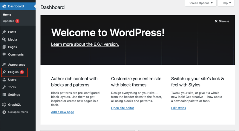 Navigate to your dashboard, typically via yourdomainname.com/wp-admin/. You can also access this through your web hosting control panel.