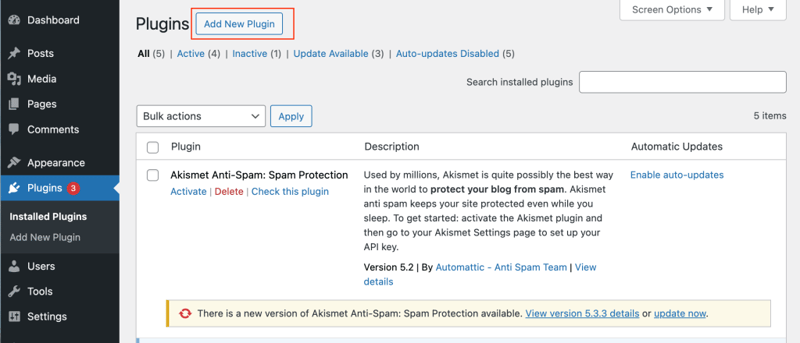 - In the left sidebar of your WordPress admin dashboard, click on “Plugins”.
