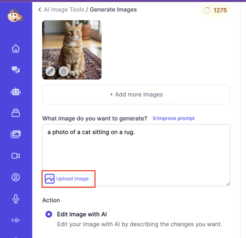 - Upload your own photo or generate one. For this example, we’ll start with a