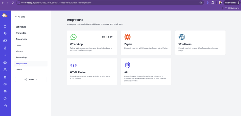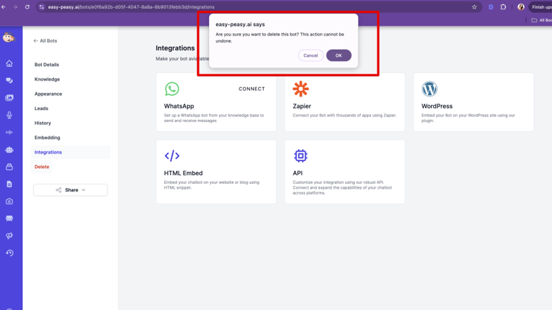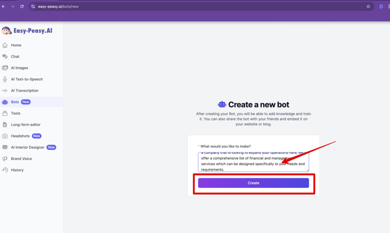 Congratulations! You’ve successfully created and launched your first AI bot with Easy-Peasy.AI. Enjoy exploring the possibilities as you further customize and integrate your solutions. Happy creating!