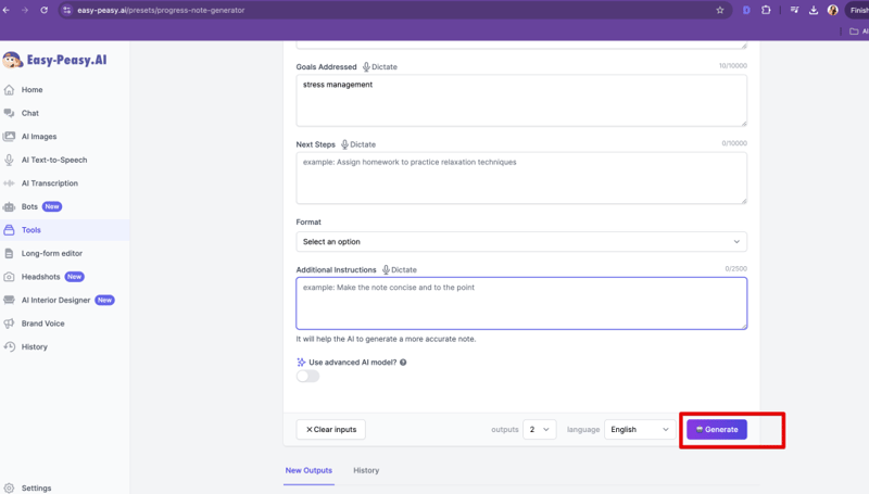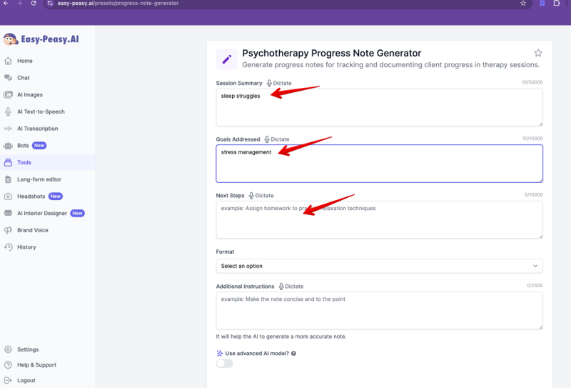 In this tutorial, you’ll learn how to efficiently generate detailed progress notes for psychotherapy sessions using Easy-Peasy.AI’s specialized tool.